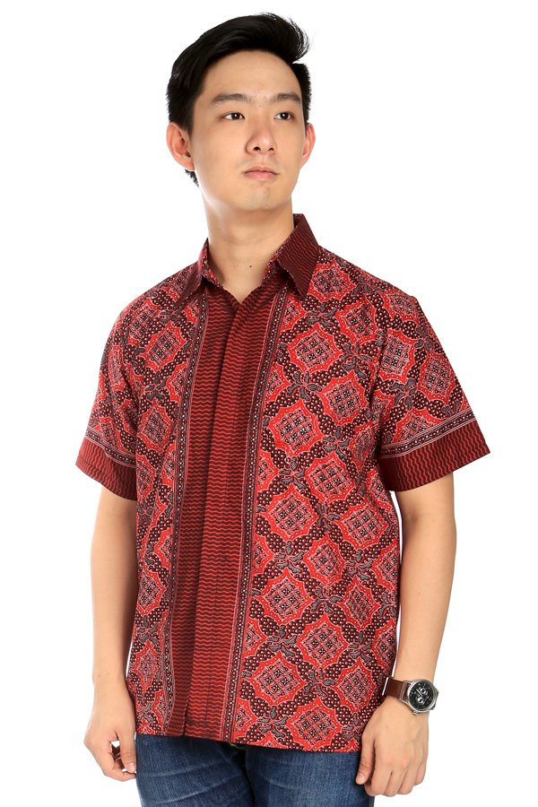 Gallery Produk Elfs Shop-Kemeja Fashion Lengan Pendek Batik Katun 5Ja3-Merah Cabe