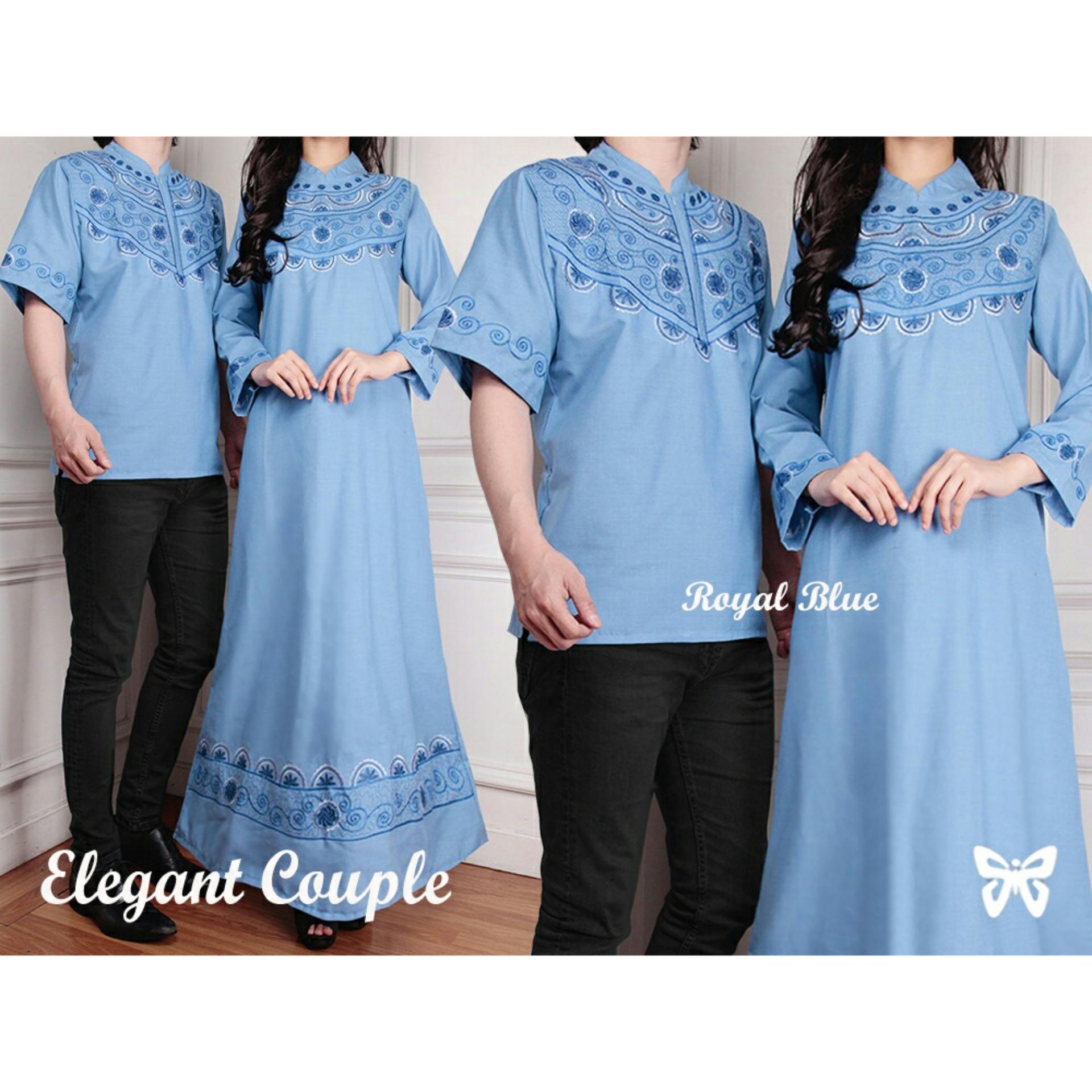 PROMO UC Batik Couple / Kemeja Gamis Muslim / Gaun Dress Hijab Muslim / Gamis Syar'i pasangan (wne egantel) SS - Biru D3C
