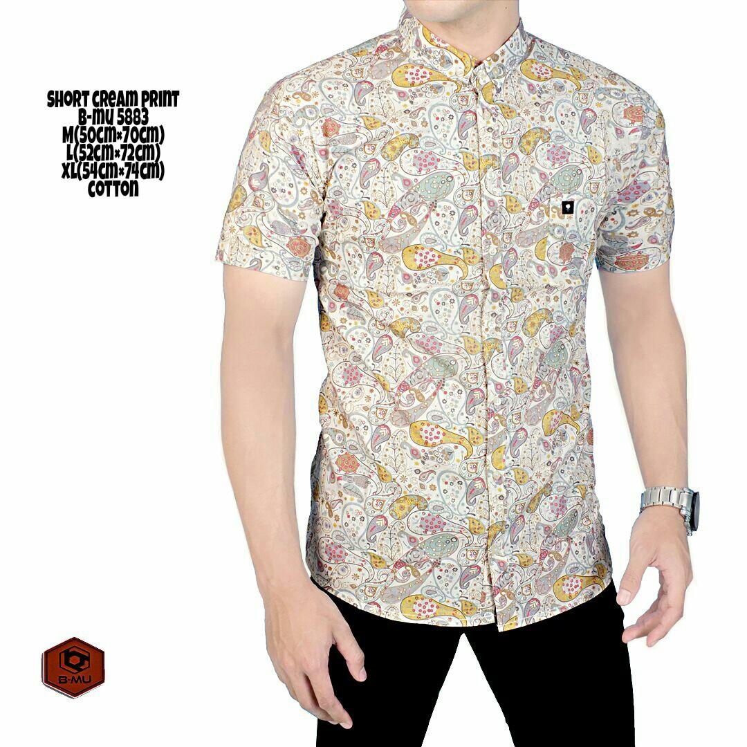 SALE STOCK bajuku murah short cream print b-mu 5883 kemeja tangan pendek short slevees fashion pria kemeja polos casual formal kantor kerja kemeja distro kaos oblong kemeja batik