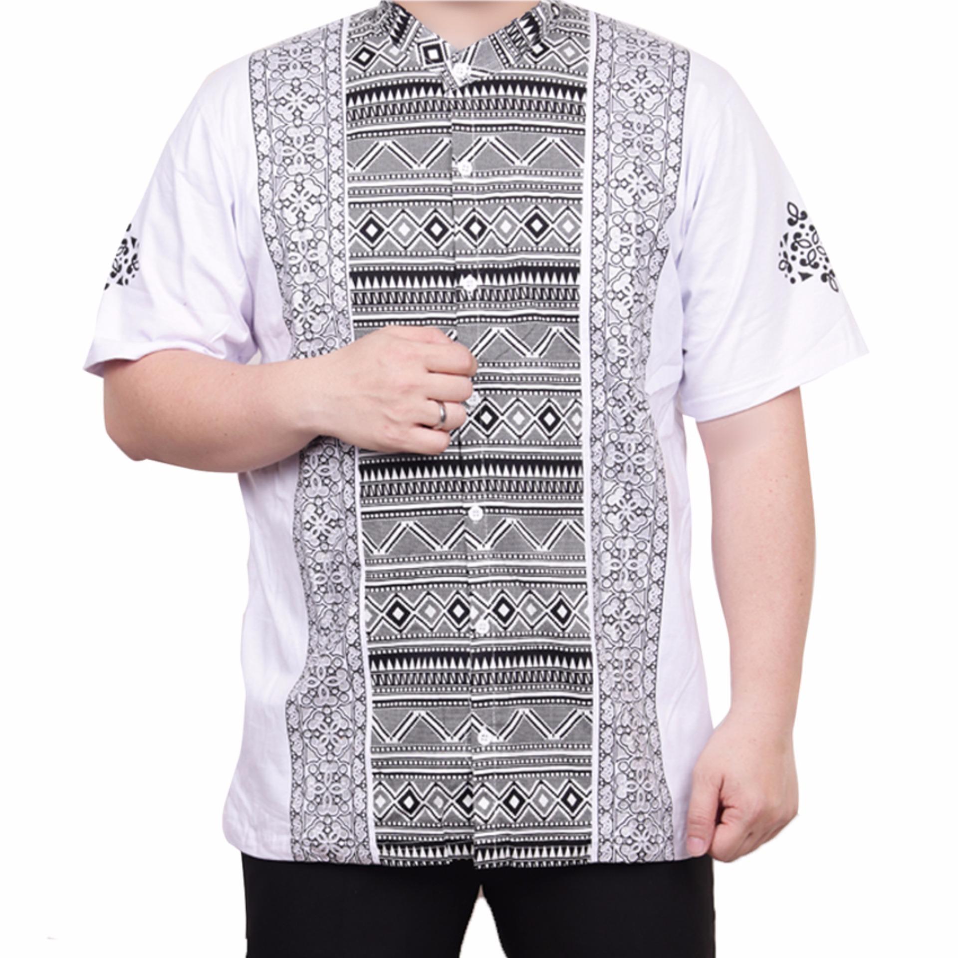 BELI Ormano Baju Koko Muslim Batik Lengan Pendek Lebaran ZO17 KK54 Kemeja Fashion Pria - Putih
