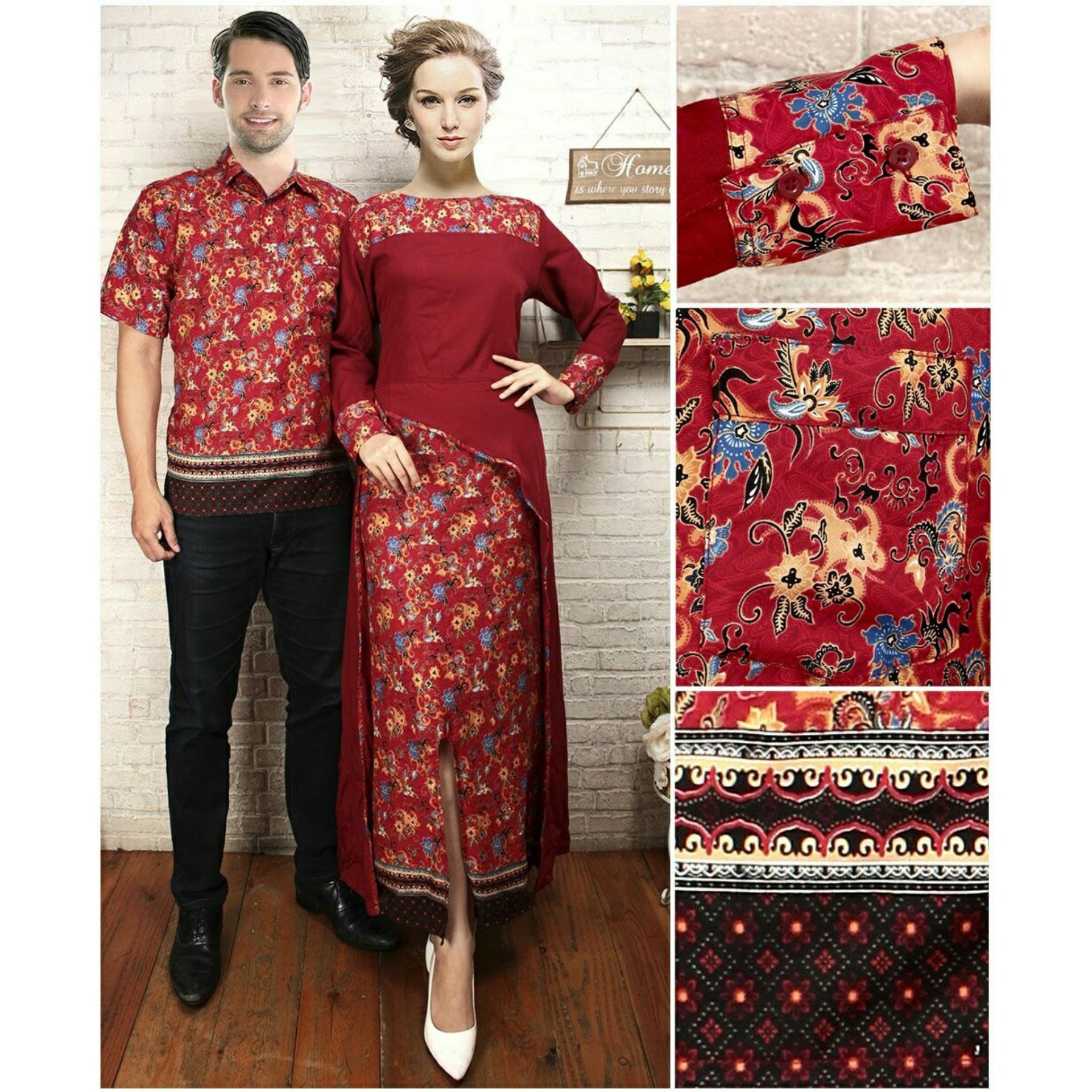 Produk Batik Termurah LF Kemeja Batik Couple Setelan Kutu Baru Modern Ema / Kebaya Busana Kemeja Muslimah Pria / Dress Gamis Wanita Muslimin (Yem) 7T - Maroon D2C