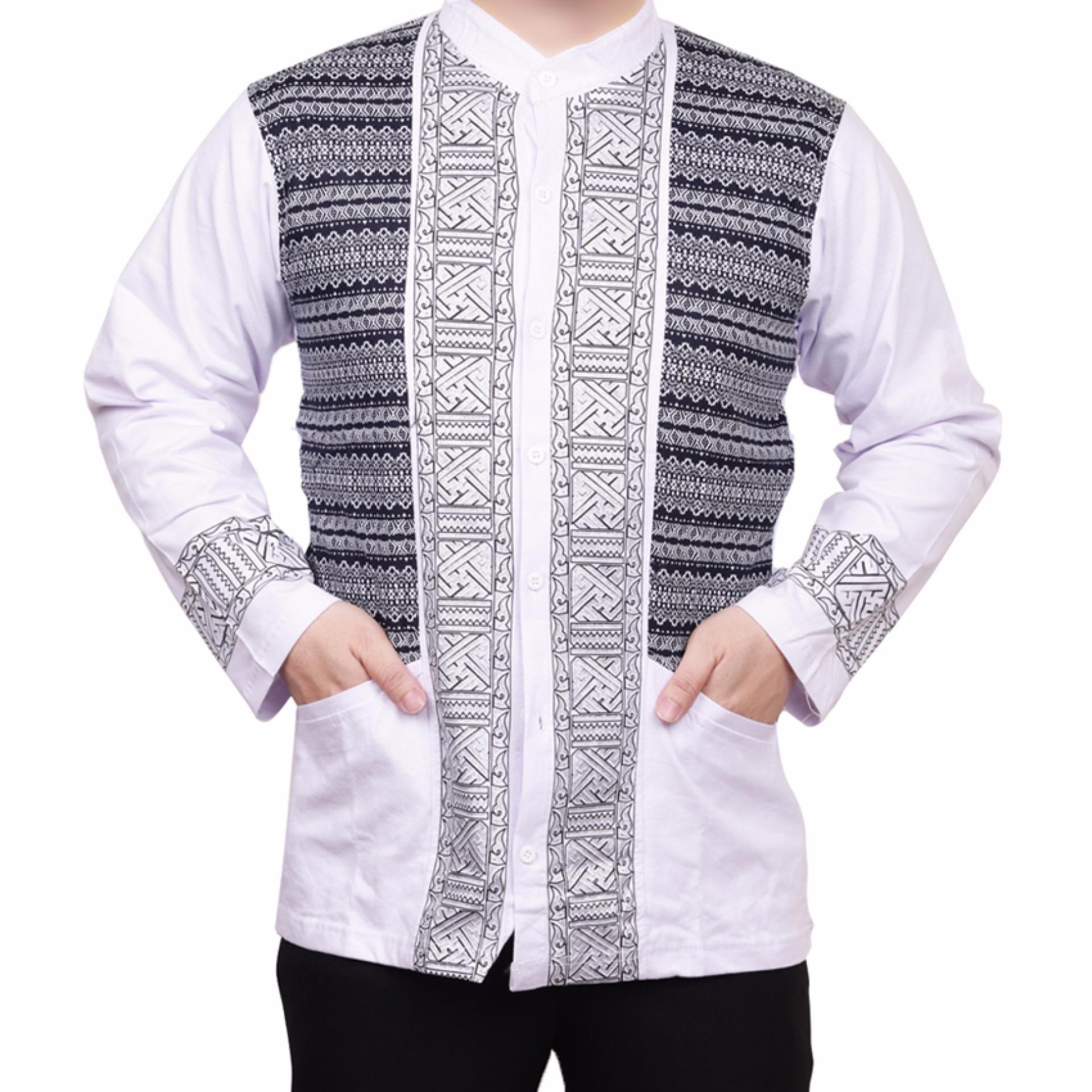 Produk Batik Termurah Ormano Baju Koko Muslim Batik Lengan Panjang Lebaran ZO17 KK36 Kemeja Fashion Pria - Putih