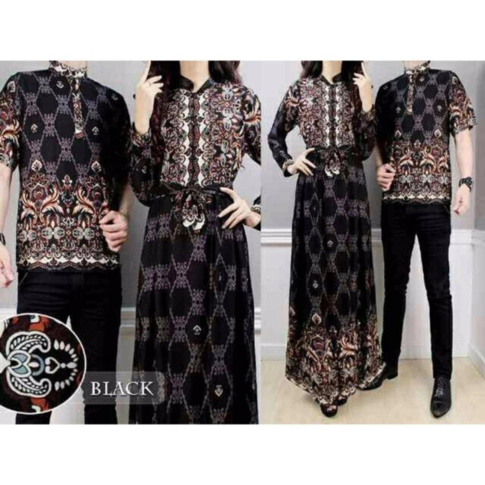Produk Batik Termurah Baju Pasangan Sarimbit Gamis Couple Alya Hitam Batik Harga Sepasang - Hitam