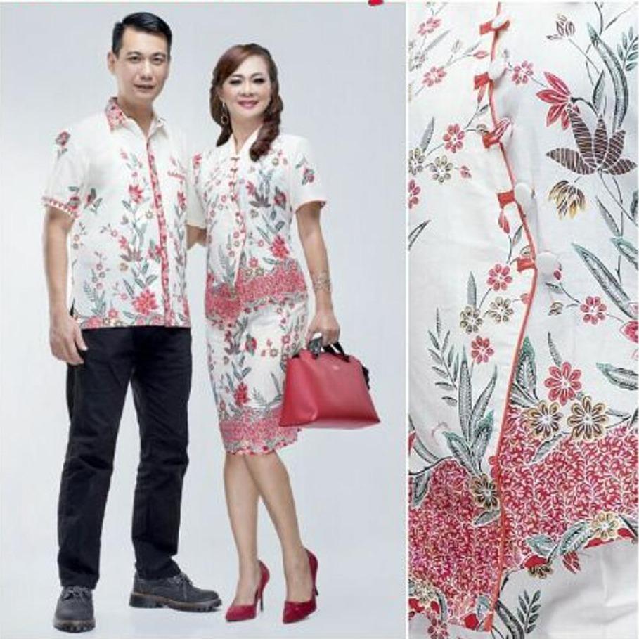 HEMAT Sarimbit Batik Couple Batik Sarimbit Rok + Blues + Hem Pria Wanita Naomi Kupu Merah