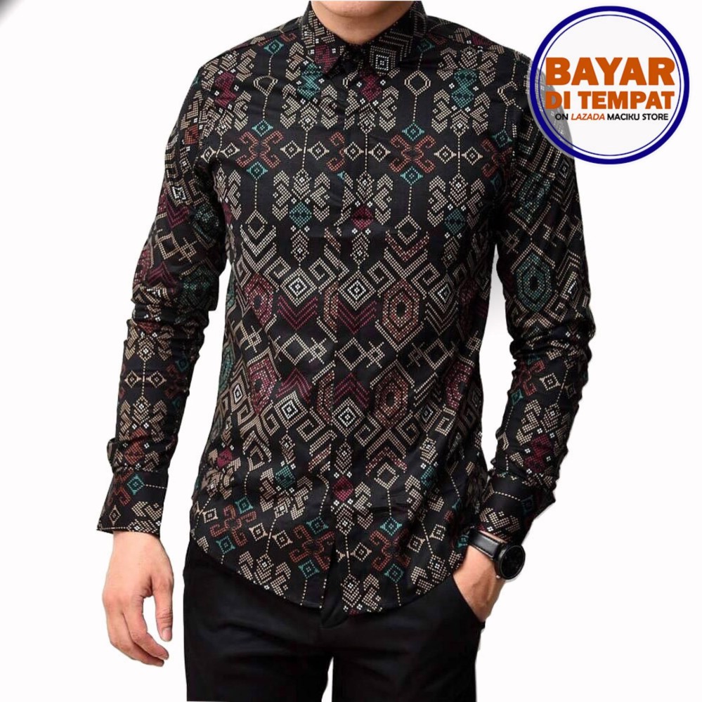 Produk Batik Termurah Kemeja Batik Pria Lengan Panjang Batik Songket Long Black