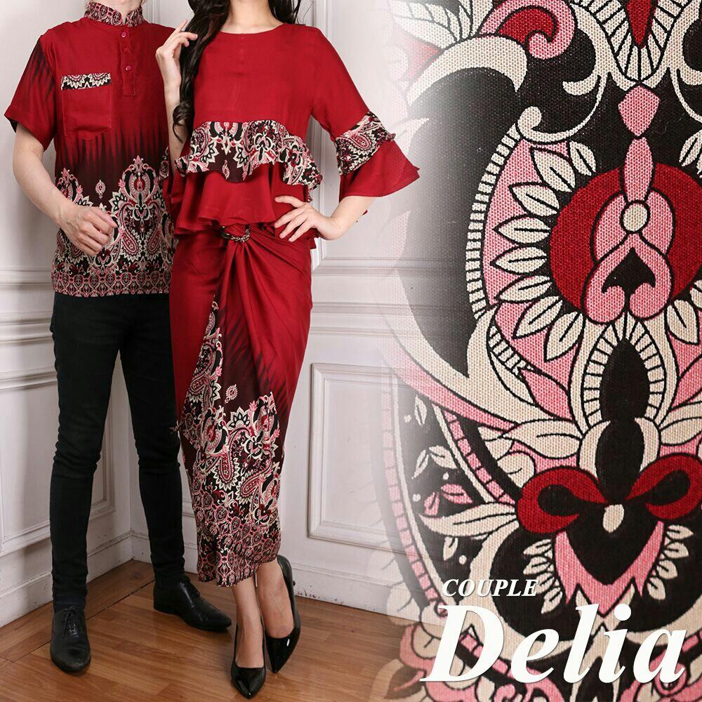 SALE STOCK UC Kemeja Pria Traditional Couple / Gamis Muslim / Kebaya Dress Wanita Batik Pasangan/ Set Muslim (liade) AK - Maroon D2C